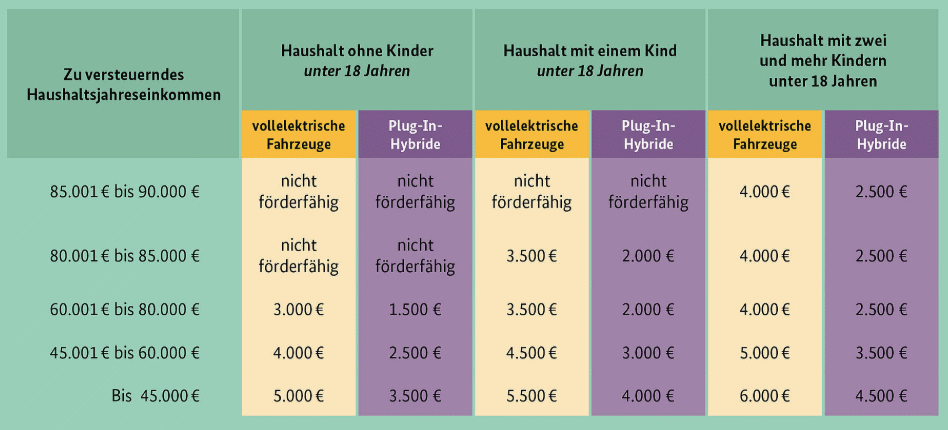 Den tyske regjeringen presenterer sin nye støtteordning for elbiler. Det siste året har elbilsalget tatt seg opp tross avvikling av en tidligere støtteordning. Nå kommer det støtte igjen, for ytterligere å få opp tempo. Ordningen vil gjelde fra 1. januar 2026. Støtten differensieres etter inntekt og antall barn under 18 år. Mest støtte gis til rene elbiler, men det vanker også støtte til noen plugin hybrider og elbiler med rekkeviddeforlenger. Fra 1. juli 2027 skal hybridene revurderes basert på faktiske utslipp. Det gis støtte både til kjøp og leasing, men bilen må beholdes i minst tre år. Ordningen er finansiert for å rekke til 800 000 biler i tre til fire år. Støtten varierer fra 17 709 kr.Valutakurs per 1. januar 2026. til 70 835 kr.Valutakurs per 1. januar 2026. per bil28.