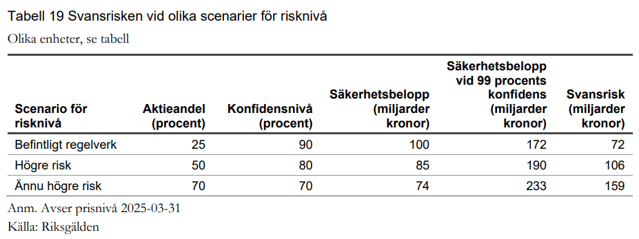 Svensk Kärnbränslehantering AB (SKB) har ansvaret for å håndtering og lagring av brukt brensel fra dagens reaktorer. SKB har denne uken publisert oppdaterte beregninger av resterende fremtidige kostnader (78 mrd. kr.Valutakurs per 1. juli 2025. (løpende priser) er brukt allerede). Fra 2027 er anslaget nå på 160 mrd. kr.Valutakurs per 1. juli 2025. I 2022 var beregningen for kostnader etter 2024 anslått til 147 mrd. kr.Inflasjonsjustert fra 2022 til 2024. Valutakurs per 1. juli 2025. Allerede da var samlede kostnader 131 mrd. kr.Inflasjonsjustert fra 2023 til 2024. Valutakurs per 1. juli 2025. høyere enn man trodde for 20 år siden, og Riksgälden omtalte de første tallene fra kjernekraftselskapene som "subjektive" og "systematisk undervurderte"37. De oppdaterte anslagene skal nå kvalitetssikres før det tas stilling til om dagens avfallsavgifter er tilstrekkelige. Kärnavfallsfonden har i dag ca. 88 mrd. kr.Valutakurs per 1. juli 2025. på bok38.