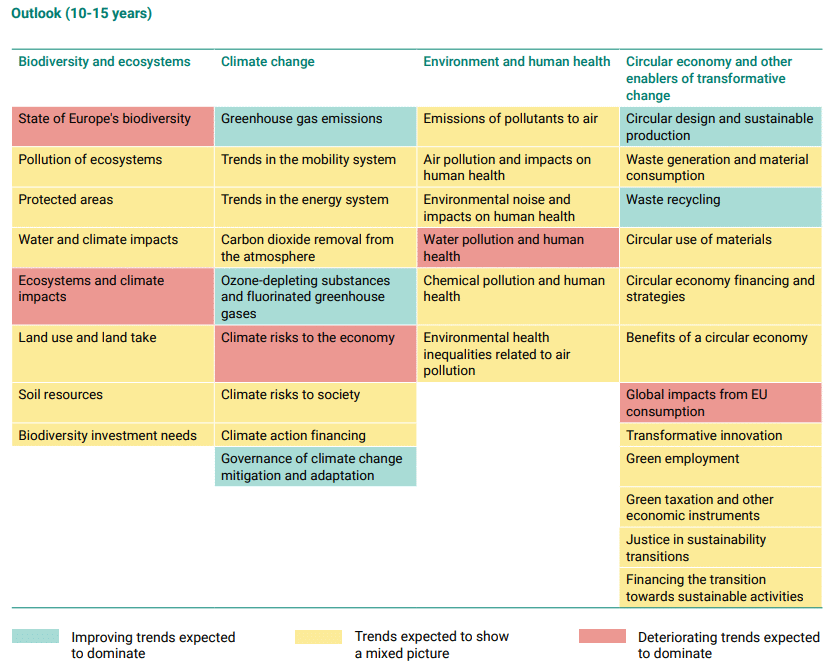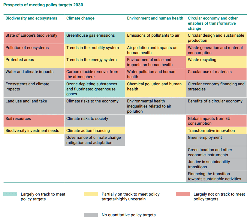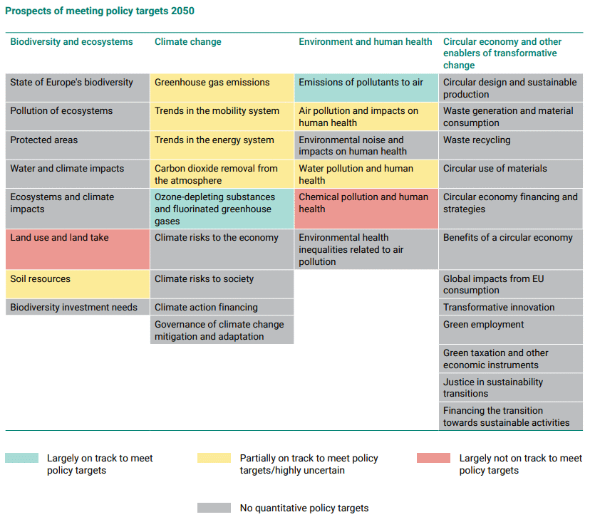 European Environment Agency (EEA) har publisert rapporten Europe's Environment 2025. Det gjort vesentlige fremskritt når det gjelder klimagasser og luftforurensing. Men samlet sett er Europas miljøtilstand ikke god. Degradering av natur, overutnyttelse, tap av biodiversitet og følgene av menneskeskapte klimaendringer er akutte utfordringer. Mye gjenstår, men EU er i rute til å nå klimamålene for 2030. Utviklingen samlet sett utgjør en stor risiko for Europas økonomiske utvikling, sikkerhet og livskvalitet2.