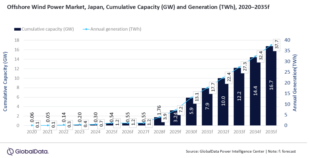 17: GD: Japan offshore wind capacity to reach nearly 16.7GW by 2035, forecasts GlobalData, besøkt 5. oktober 2025