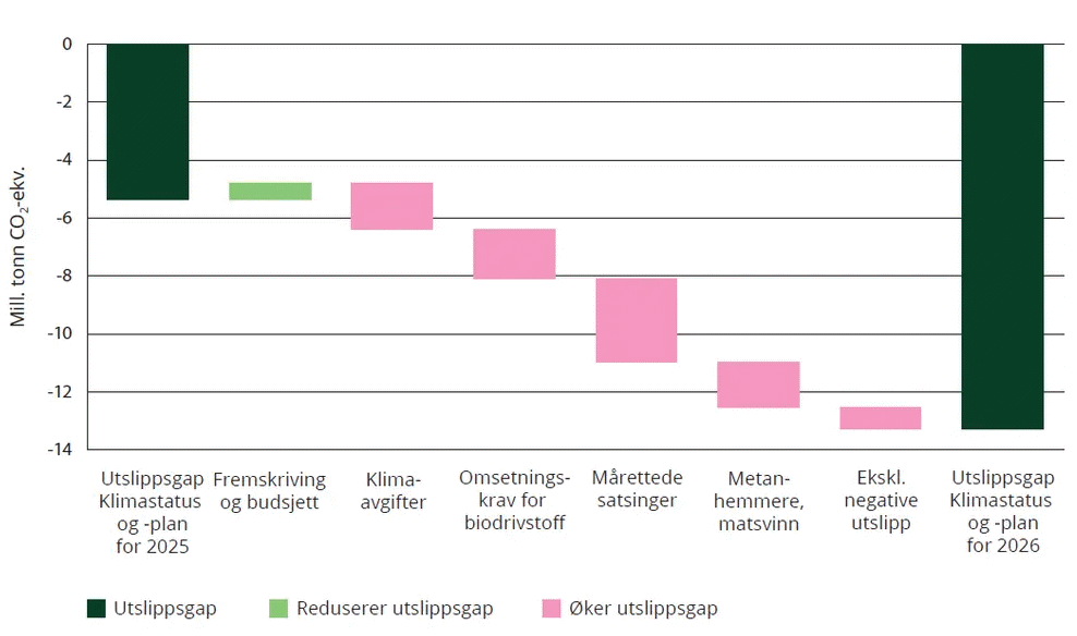 Energi og Klima har en oversikt over klimasakene i statsbudsjettet. Bakteppet for flere av forslagene er at gapet øker mellom fremskrivningene og de forpliktelser vi har påtatt oss i samarbeidet med EU. Dels skyldes det endrede anslag, dels valg regjeringen selv har gjort. For å komme i rute foreslås både forsterkede tiltak og kjøp av utslippsenheter i andre land10.