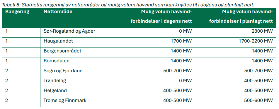 Statnett har publisert rapporten Utvikling av nett til havs 2025. Statnett jobber for å finne mer kostnadseffektive nettløsninger til havs. Et masket nett i Nordsjøen ligger trolig langt frem i tid. Det kan knyttes 15 GW havvind til nettet i Norge frem til 2045 med dagens nett eller det som er planlagt utbygget for andre formål. Det forutsetter spredt tilknytning langs kysten. Mer kan kobles til hvis det samlokaliseres med nytt forbruk og lokale nettinvesteringer. I dag er grensen for dimensjonerende utfall på 1,4 GW i Norden. Det er også kapasiteten på de største utvekslingskablene. De nordiske systemansvarlige åpner nå at kravet kan innfris for opptil 2,8 GW ved å designe anleggene på en viss måte. Havvind vil få best betalt ved å koble seg til på Vestlandet i prissonen NO522.