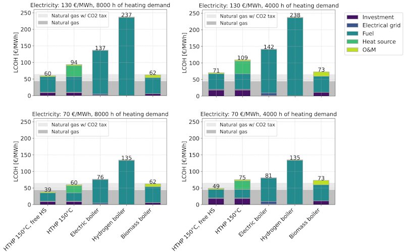 Studien Techno-economic analysis of technologies for decarbonizing low- and medium-temperature industrial heat er publisert i Cell Reports Sustainability. Forskerne bak studien sammenligner kostnaden for ulike teknologier for levering av industrivarme. Varmepumper er den mest kostnadseffektive løsningen, og kan i mange tilfeller være billigere enn bruk av gass. Dersom varmepumper eller elektriske kjeler bygges sammen med varmelager, reduseres varmekostnaden. Hydrogen vil være kostbart som varmekilde33.