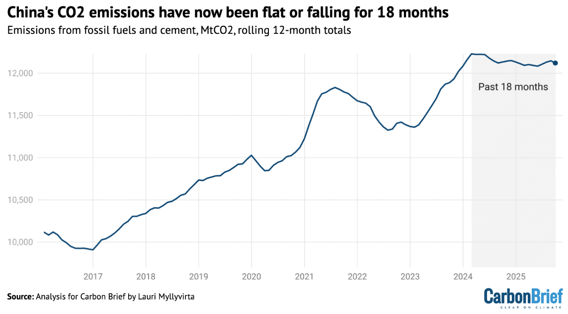 7: CB: Analysis: China’s CO2 emissions have now been flat or falling for 18 months, besøkt 15. november 2025