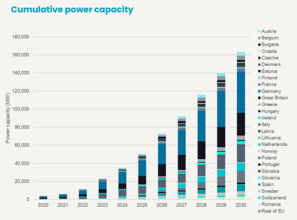 Energy Storage Europe og LCP Delta har publisert rapporten European Market Monitor on Energy Storage 9.5. I dag utgjør pumpekraft 53,6 GW og batterier 44,8 GW. Batterikapasiteten ventes nå å passere 163 GW i 203033.