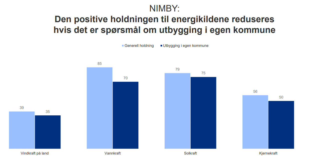 Klima klatrer til fjerde viktigste politiske sak for nordmenn, men andel som har den blant de tre viktigste faller til 25 prosent. Det viser Kantars klimabarometer. Trenden er den samme blant unge. Halvparten mener myndighetene gjør for lite for å kutte utslipp av klimagasser i Norge. Vannkraft er nå mest populært (85 prosent), fulgt av solkraft (79), kjernekraft (56), havvind (51), olje (41) og vindkraft på land (39). Ved utbygging i egen kommune faller kjernekraft såvidt under havvind til 50 prosent og vindkraft på land til 35 prosent16.