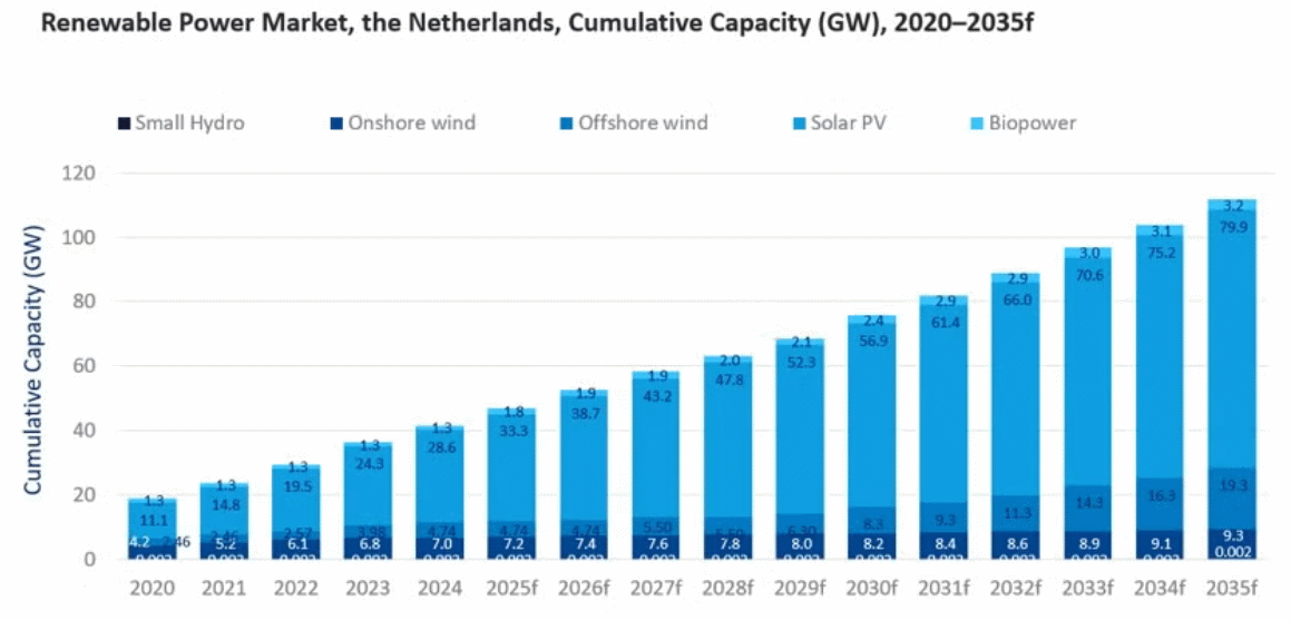 40: GD: Netherlands' renewable power capacity to reach 111.7GW in 2035, forecasts GlobalData, besøkt 23. november 2025