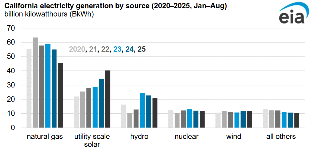 21: EIA: Natural gas use for electricity in California falls as solar generation rises, besøkt 30. november 2025