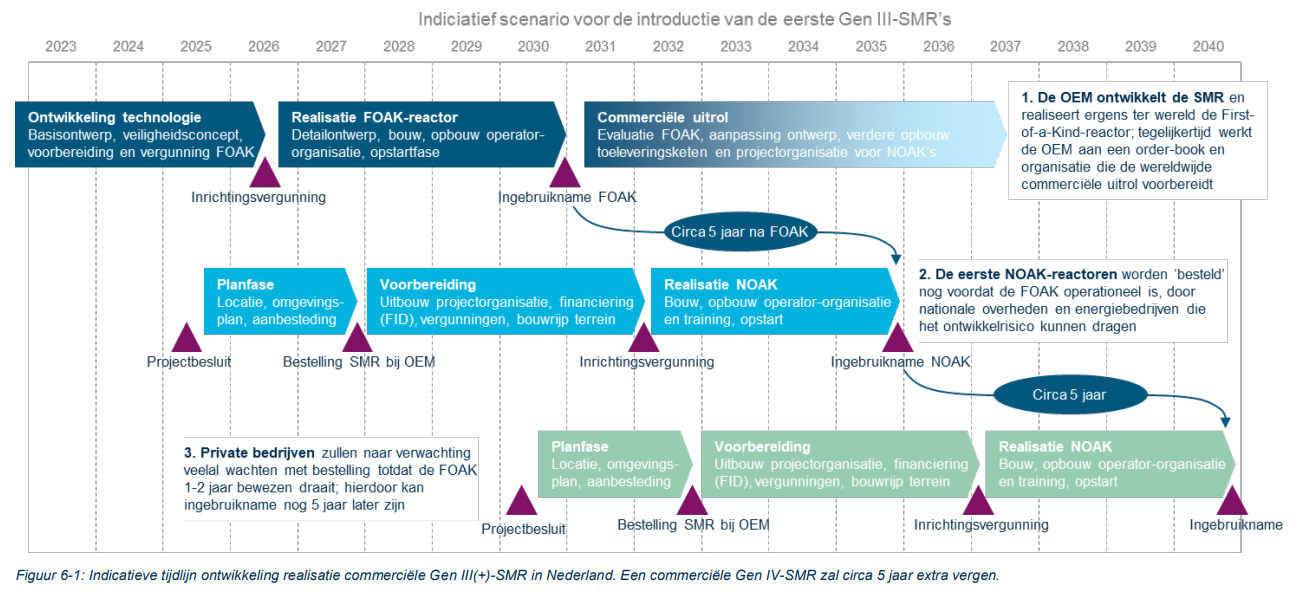 Regjeringen i Nederland har oversendt rapporten Ruimtelijke en Energetische inpassing Small Modular Reactors (SMR's) bij de industrie til parlamentet. Den er utarbeidet av et konsulentfirma for å vurdere bruken av små modulære reaktorer (SMR) i industrien i Scheldt Delta-regionen. Området vil ha overskudd av strøm fra havvind, og muligens konvensjonelle reaktorer senere. Mer elektrisitet behøves derfor ikke, så det er primært behovet for industrivarme og hydrogenproduksjon som vurderes. Hensyn til miljø, flomfare, sikkerhet, vanntilgang, nett osv. gjør det vanskelig å finne egnede lokasjoner. To områder pekes ut, men må utredes ytterligere. SMR-designene som er nærmest kommersialisering leverer ikke høy nok temperatur for prosessvarme. Nye reaktordesign med høy nok varme er ikke realistiske før etter 2040 og forutsetter utvikling av håndteringskjeder og nye sikkerhetsstandarder for brensel med høyere anriking enn det dagens reaktorer bruker. Man vet i dag ikke hva reaktorene vil koste og teknologien vil tidligst bli alment tilgjengelig om 15 år38.