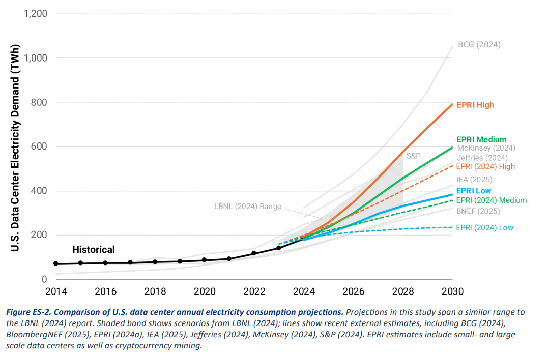 EPRI oppjusterer scenarioer for datasentre