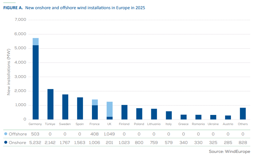 - Europa installerte 19,1 GW ny vindkraft i 2025
