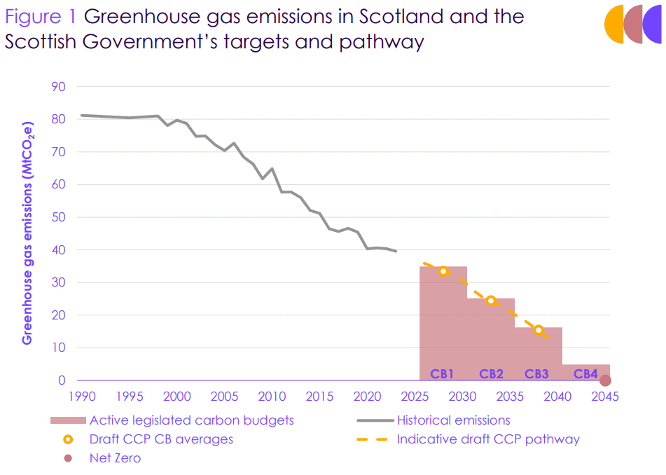 Den uavhengige Climate Change Committee vurderer at Skottlands kortsiktige klimamål er innen rekkevidde. For utslipp omfattet av budsjettet for 2026-30 er det nå troverdige planer eller planer med lav risiko for 91 prosent av utslippskuttene. Mye er gjort de siste to årene blant annet når det gjelder elbiler og restaurering av myr. På lengre sikt er utfordringen dekarbonisering av bygninger og teknologi for negative utslipp. Her trengs det nå innsats med tanke på karbonbudsjettet som starter i 20316.